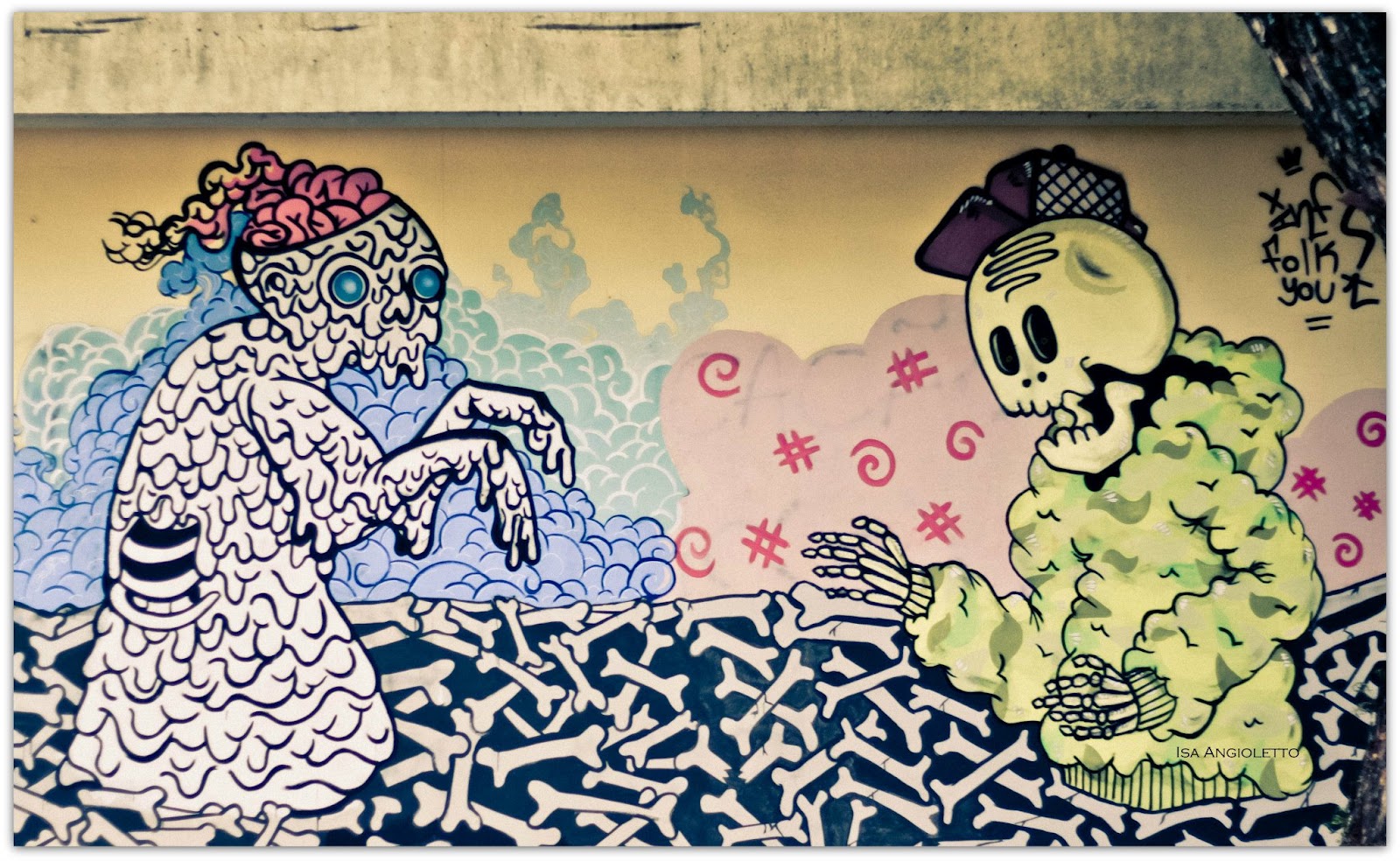 - Como é trabalhar em conjunto com outros artistas, recentemente fez um trabalho com Folk You na UEM. Planejam o que irão fazer antes ou vão produzindo e unem os desenhos depois?