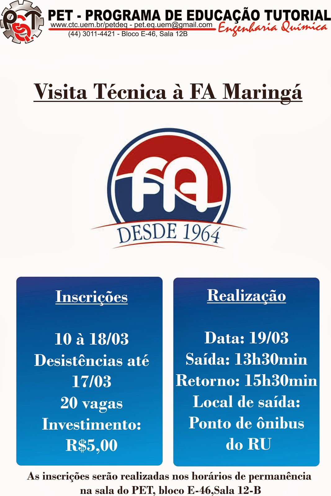 O PET Engenharia Química realizará no dia 19 de março uma visita técnica